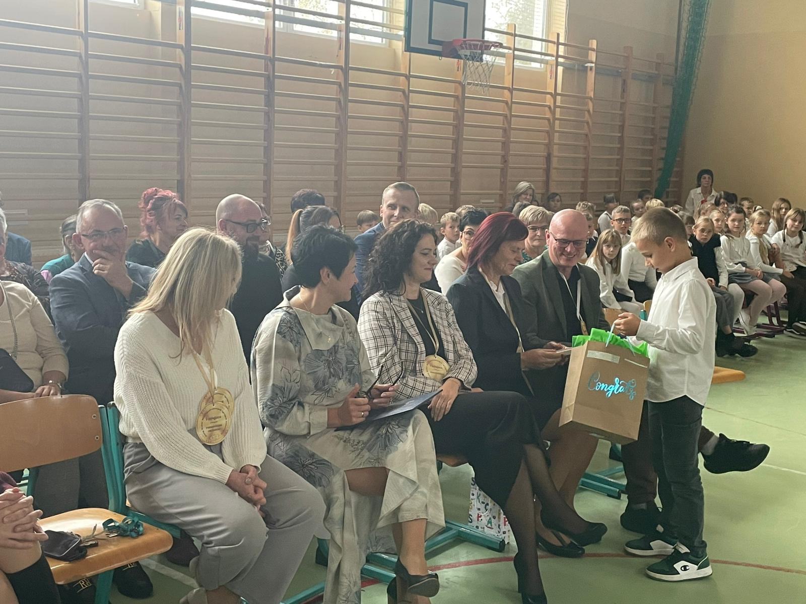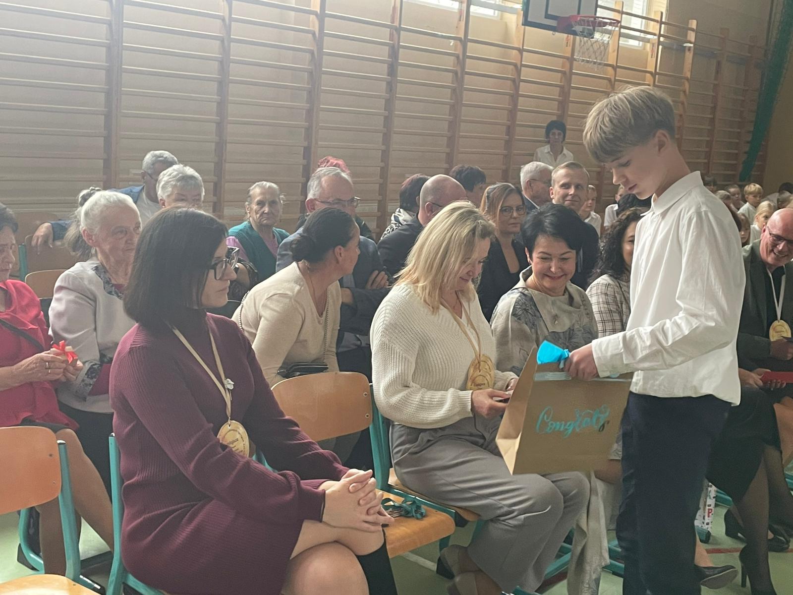 Na zakończenie uczeń klasy VII zagrał na akordeonie tradycyjne „Sto lat”, które rozbrzmiało w całej sali. ??