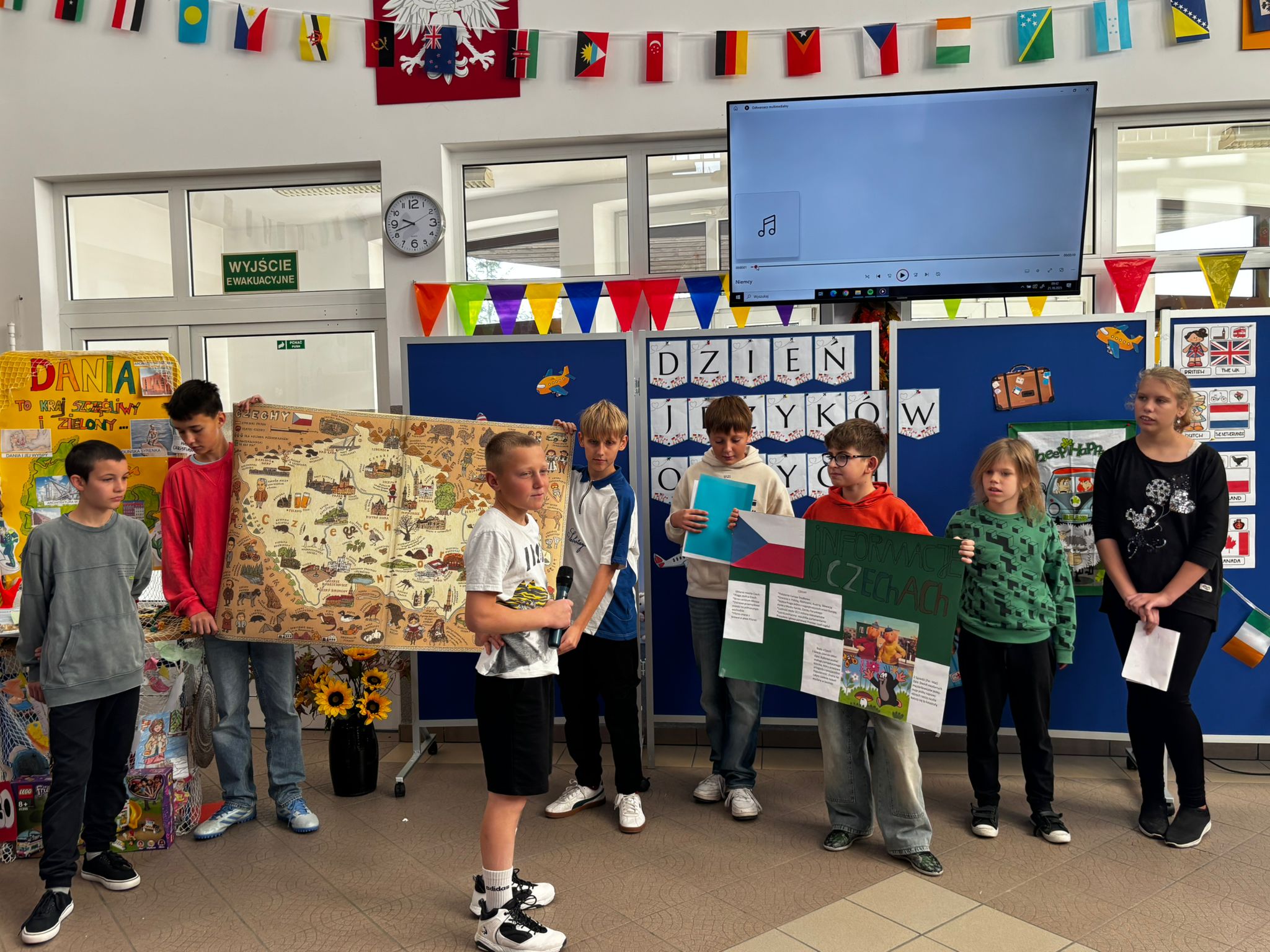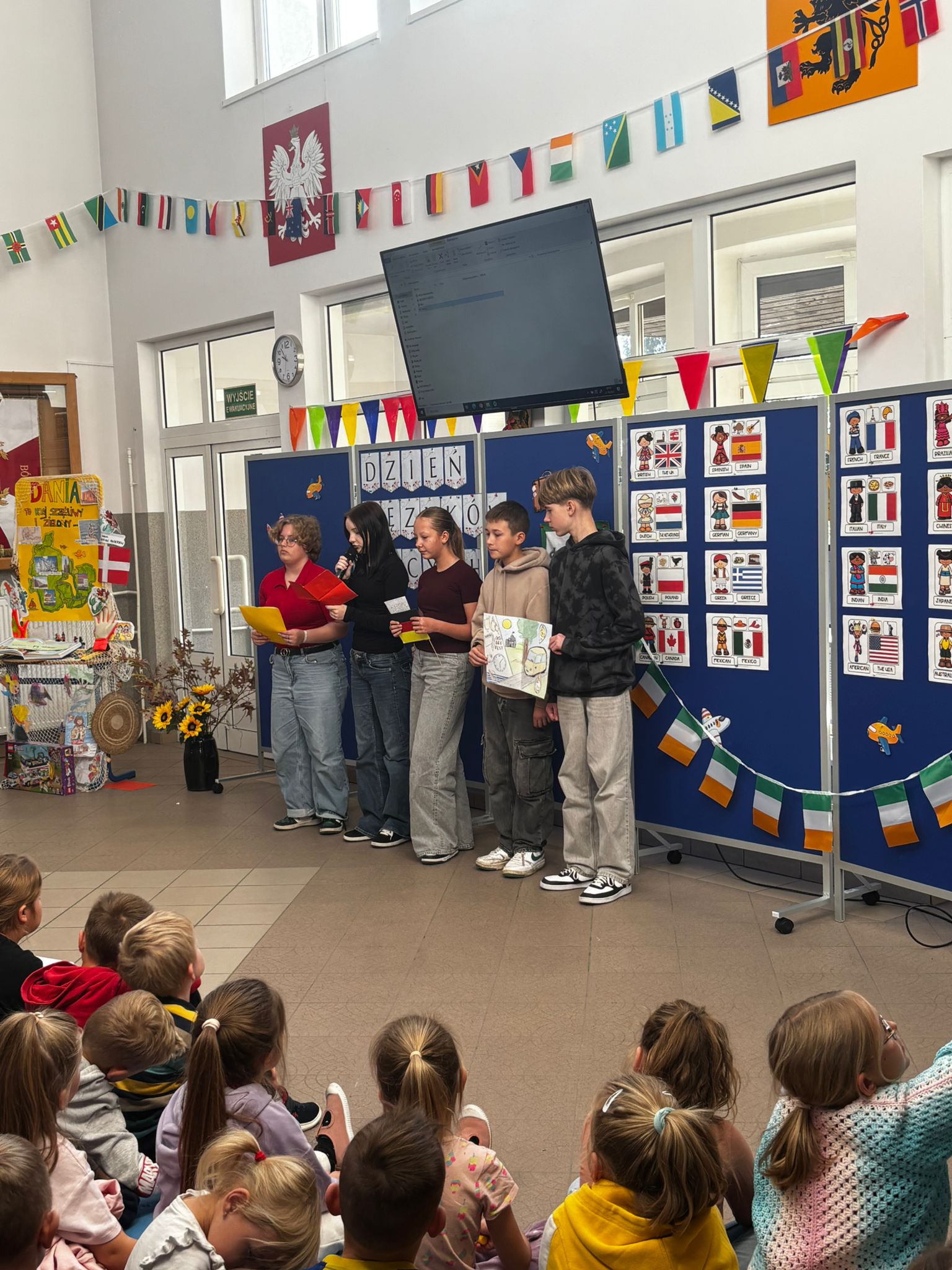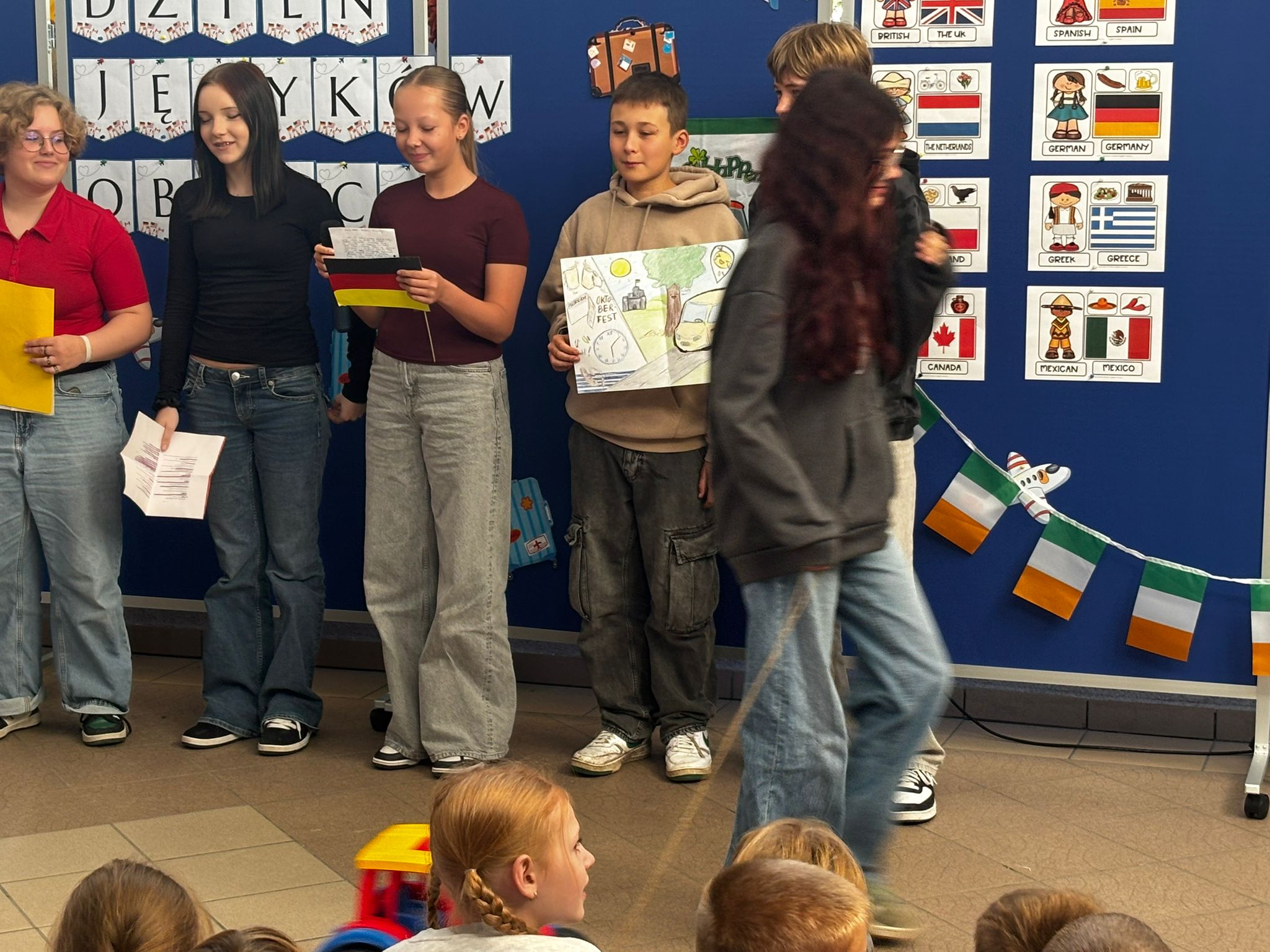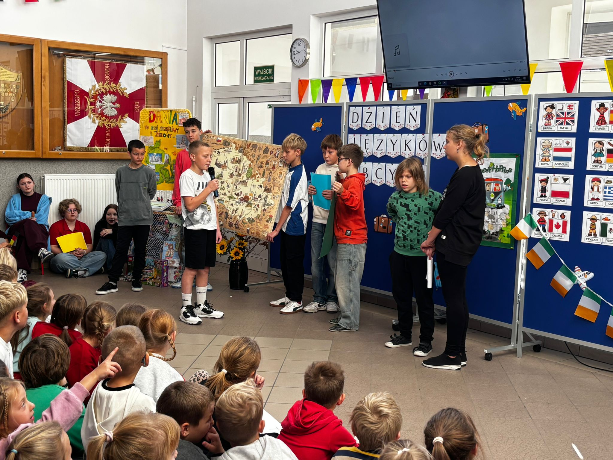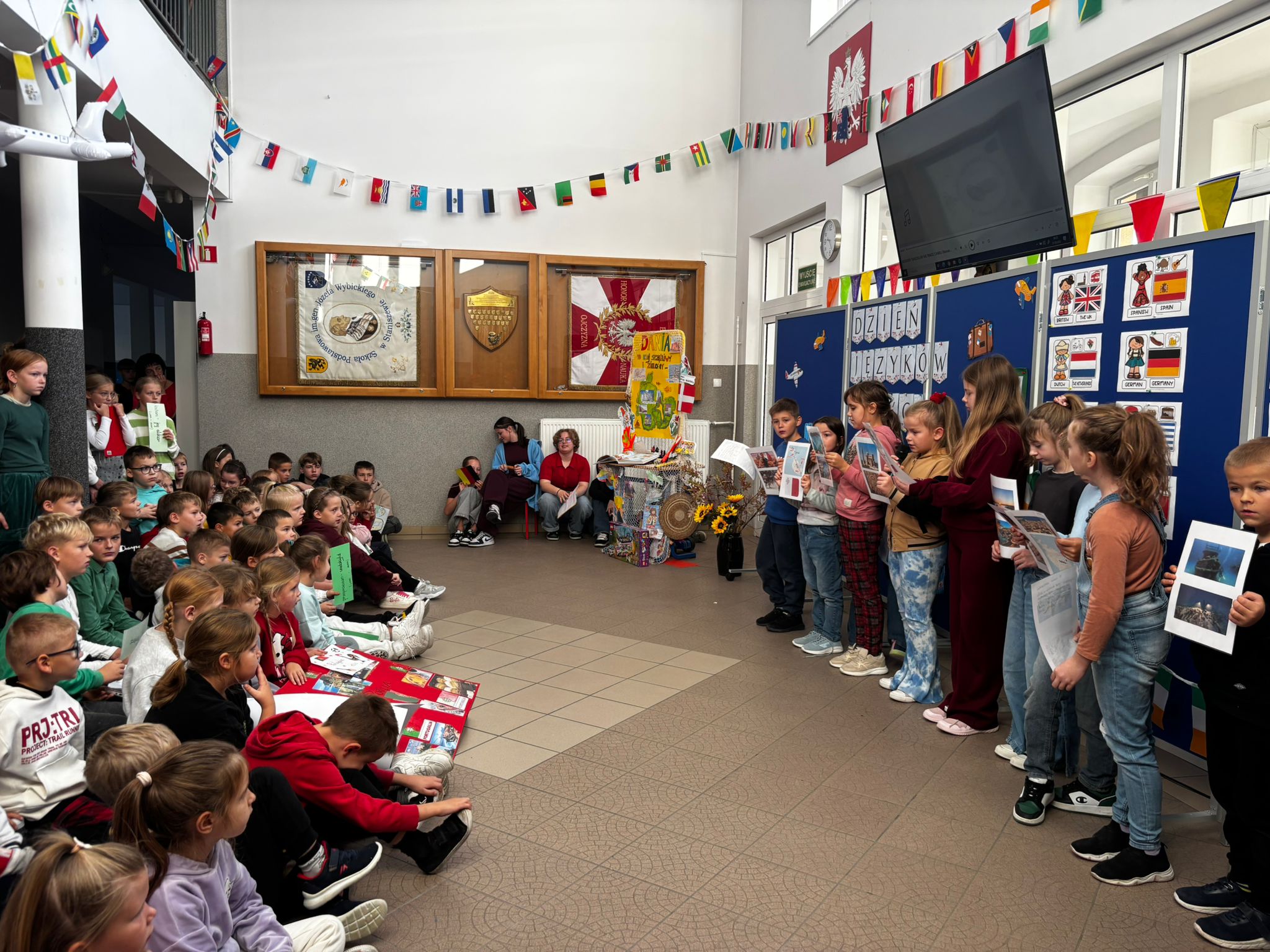 Każda klasa zaprezentowała wybrany kraj, przygotowując ciekawostki, potrawy, tańce i prezentacje, które przeniosły nas w najdalsze zakątki globu.
